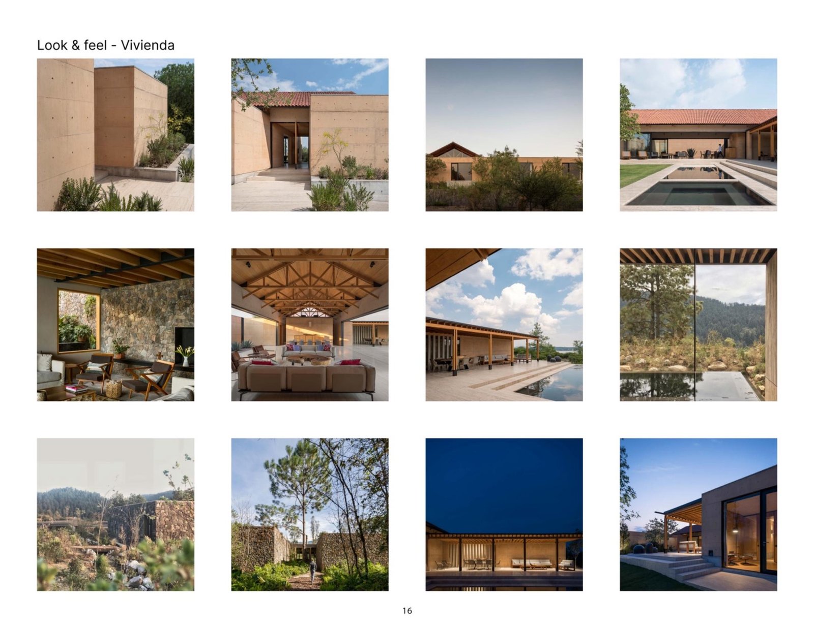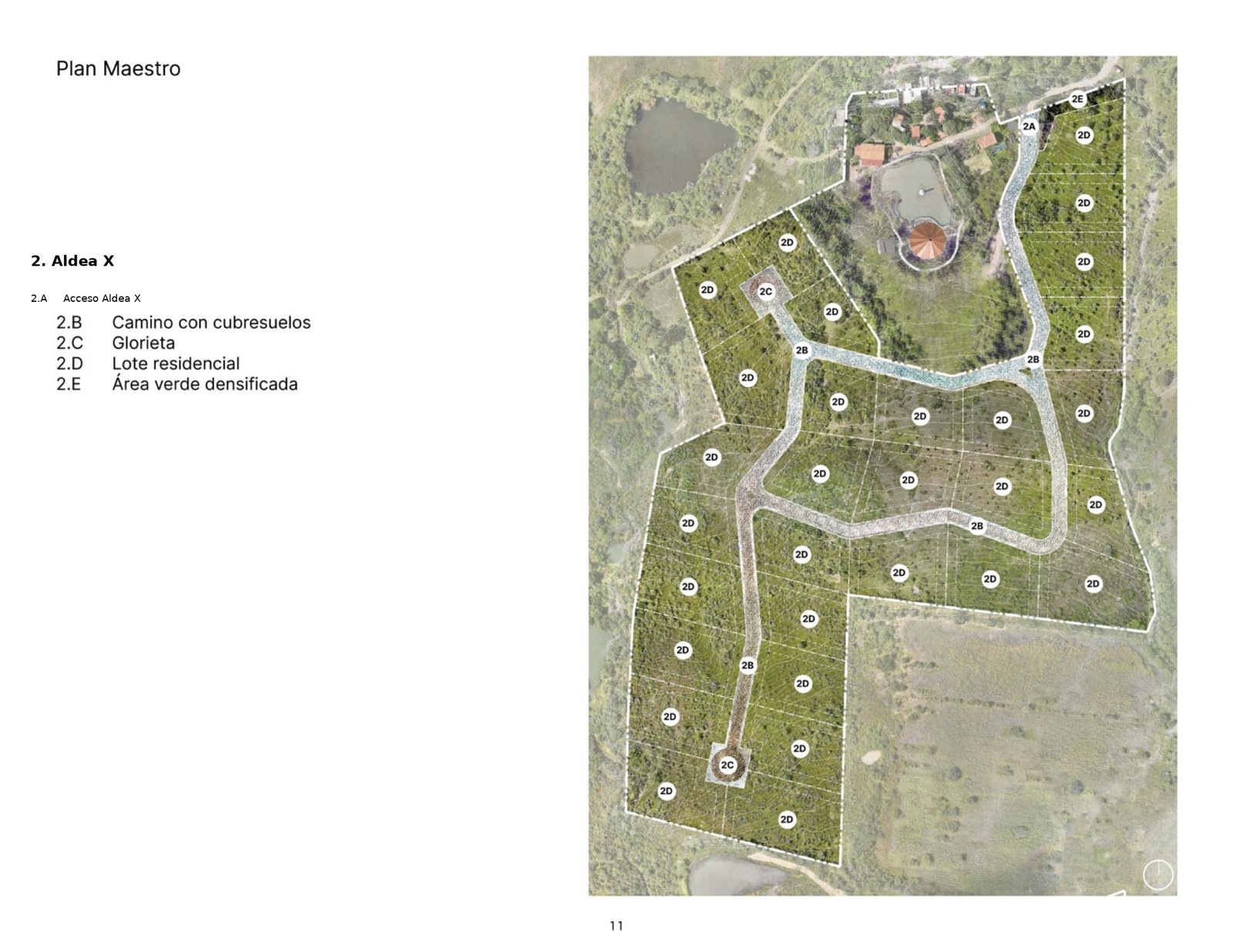 El plan maestro de Aldea X fue diseñado por el Centro de Colaboración Arquitectónica (CCA), dirigido por Bernardo Quinzaños — el mismo despacho detrás del Shala ceremonial de Casa X. Caminos orgánicos que respetan la topografía, glorieta central y 50% del territorio preservado como naturaleza.